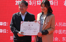 北京市中医管理局局长屠志涛为中医药推广大使悦悦颁发证书